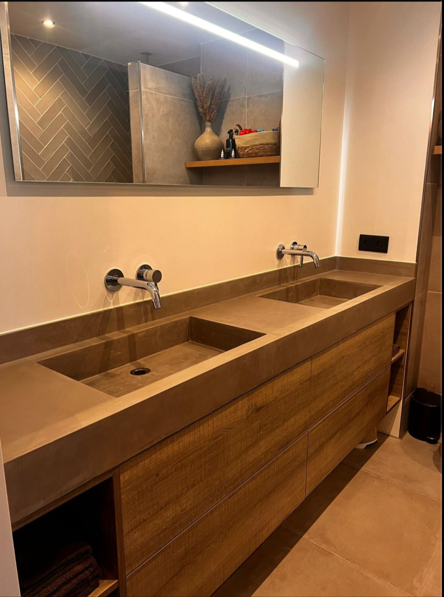 Duurzaamheid: Betoncire is duurzaam en bestand tegen slijtage, krassen en vlekken, waardoor het een ideale keuze is voor drukbezochte ruimtes zoals keukens, badkamers en commerciële omgevingen.